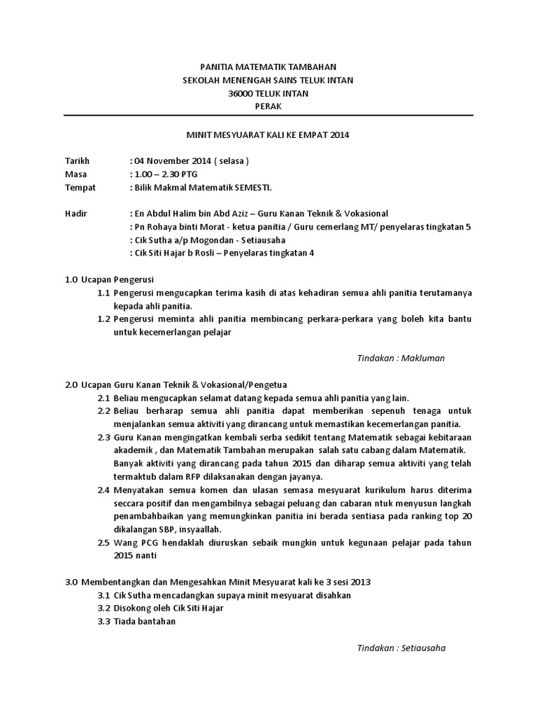 Minit Mesyuarat Kali Ke 4 Matematik Tambahan 2014 via www.scribd.com